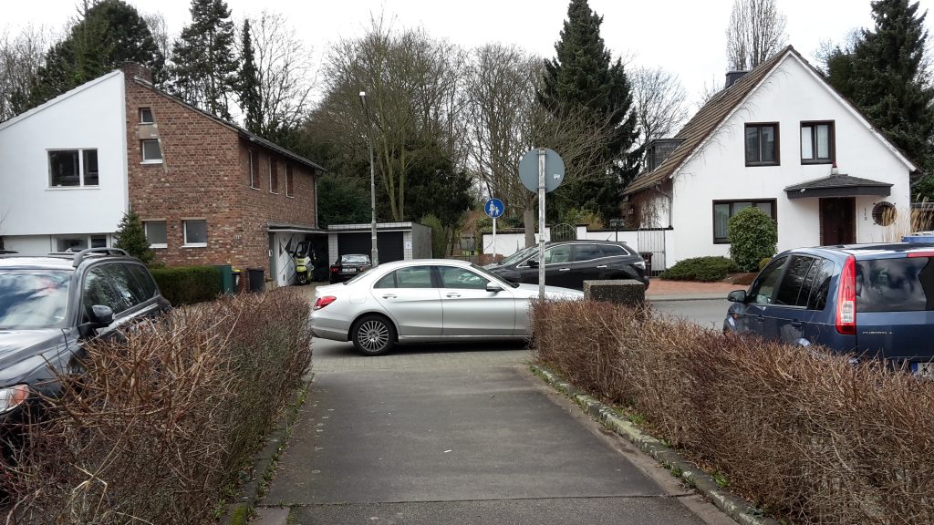 Die Passanten (Hundehalter, Schüler, Spielplatzbesucher), die täglich die Straße queren nehmen die Pöller als eine gute Maßnahme wahr, da der Slalom um die geparkten Fahrzeuge entfällt und der fließende Verkehr besser einsehbar ist.