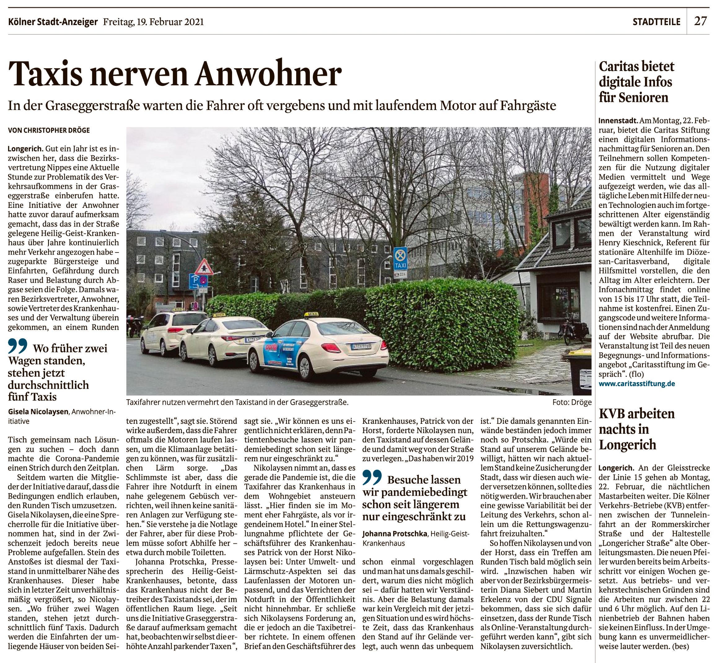 Artikel im Kölner Stadtanzeiger am 19.2.2021