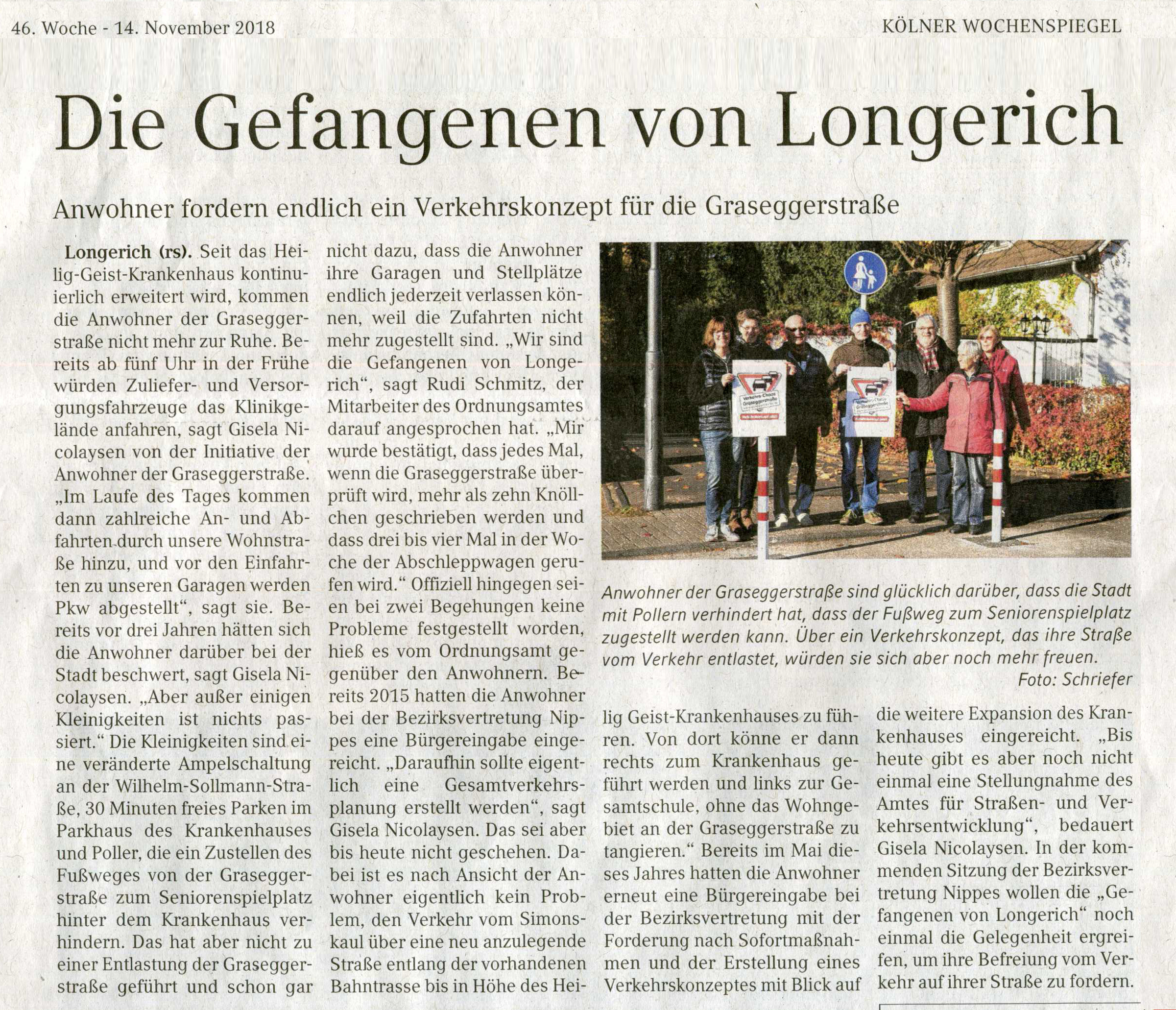Überquerungshilfe für Fußgänger zwischen „Fußweg Rambouxstraße und Park“. Ende Oktober 2018 wurden auf der Graseggerstraße in Höhe der Fußwege aus der Rambouxstraße und des Parks Pöller eingebaut. Die Pöller verhindern das zuparken der Fußwege und ermöglichen somit ein sichereres Überqueren der Graseggerstraße an einer definierten Stelle.